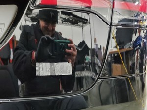 注从中间开始向外,用叠缝滚压机施加压力,使徽标紧粘在掀背尾门上。提示: 推荐使用以下工具: