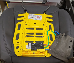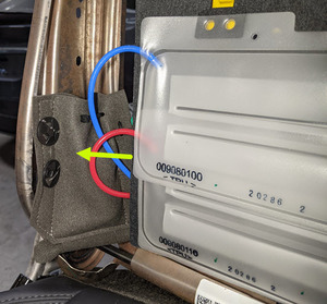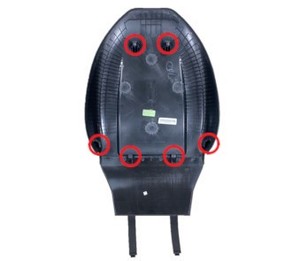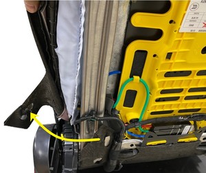 注一个线束用于座垫,另一个线束用于座椅靠背。上部支架用于辅助布线,下部卡子用于固定线束。