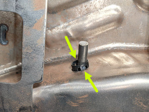 - 在协助下,对齐并完全固定将驾驶位座椅靠背外壳固定到座椅总成的卡子。