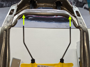 将驾驶位座椅靠背腰部支撑放置在座椅框架上,将悬架臂(2 个)安装到位,然后将下部锁片(2 个)固定到靠背框架上。