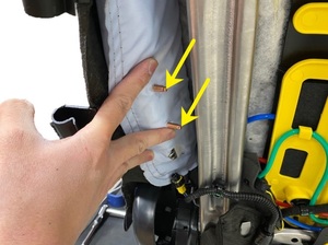 - 将驾驶位座椅腰部支撑泵泡沫外壳袋夹(2 个)固定在座椅靠背框架上。