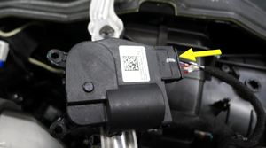 剪断并丢弃将进气执行机构固定至暖通空调线束的扎带,断开执行机构电气连接器,然后从车辆上拆下执行机构。