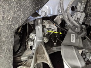 拆下将左侧后止推杆固定到转向节的螺栓。