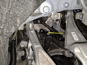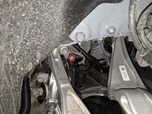 拆下将左侧车身高度传感器固定到车辆的螺栓,并将传感器移至一侧。