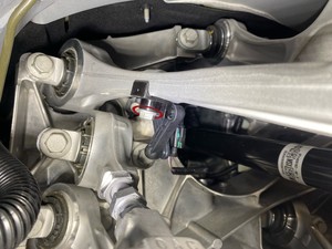 安装将 LH 车身高度传感器固定到悬架连杆的螺栓。