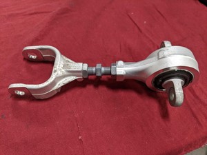在支撑 LH 后转向节的同时,拆下将 LH 后止推杆固定到副框架的螺栓 (x2),然后从车上拆下止推杆。