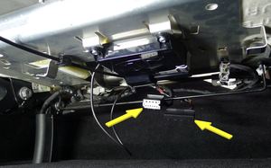 - 将电气连接器(2 个)连接到左侧第二排座椅控制器模块。