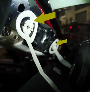 6 个系带夹;有助于后续安装顶篷;可通过 Grainger Punchout 目录中的 eProcurment 购买用于松开这些卡子的理想工具,商品编号 2ZPP2 - GearWrench 推针钳
