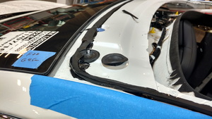可使用饰板工具将车顶玻璃密封条固定到挡风玻璃密封条下