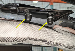 2 个系带夹,1 个卡子,1 个连接器;沿仪表板和扬声器格栅滑动饰板底部,将系带固定到车身侧;从底部开始向上放置卡子;将密封件拉过饰板