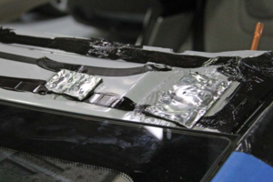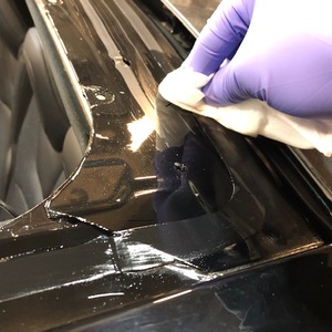 将新密封条放置在玻璃前的挡风玻璃密封条下