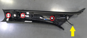 4 个卡子,3 个连接器,确保后视镜线束的布线方式是自由悬挂在外部,而不是被盖板和遮光板总成夹住