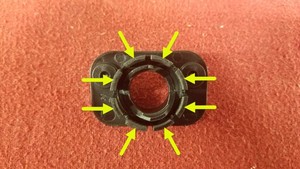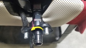 - 在新的第二排右侧座椅靠背枢轴套上做标记,使其与旧的枢轴套方向一致。