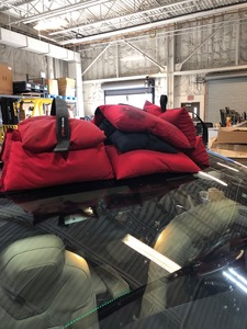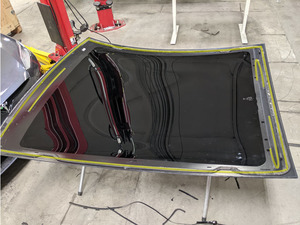- 在协助下,拆下车顶玻璃并将其倒置在支架上。