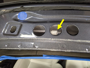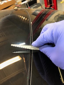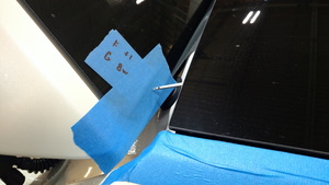 - 用遮蔽胶带覆盖掀背尾门的纵梁和前角。