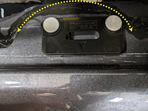 - 撬开以松开固定左侧后衣帽钩螺钉盖板的锁片(2 个)。