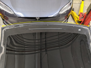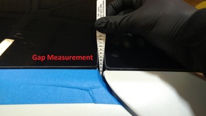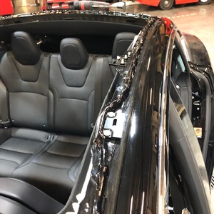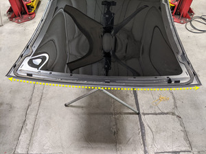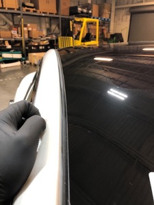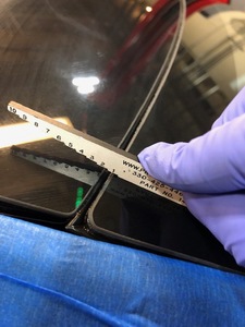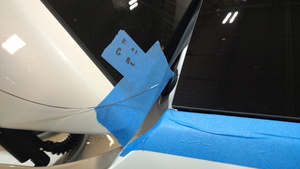 - 在助手的帮助下,将掀背尾门玻璃安置于车身处,进行快速适配。
