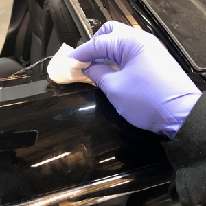 - 沿聚氨酯路径在固定车顶玻璃上涂底漆。