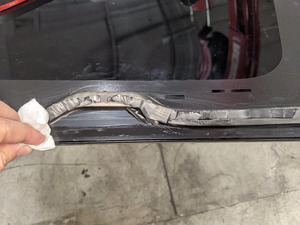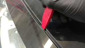 - 将工具嵌入后部角落的固定车顶玻璃聚氨酯。