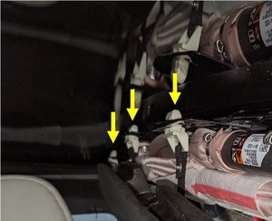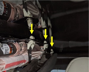 注在 XM 天线、车顶行李架块和 B 柱周围支架的螺栓附近时,需谨慎。