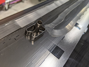 - 将较大的切割喷嘴安装到氨基甲酸乙酯盒上,而后将氨基甲酸乙酯涂抹到侧边和后边缘以及后辅助压条上。