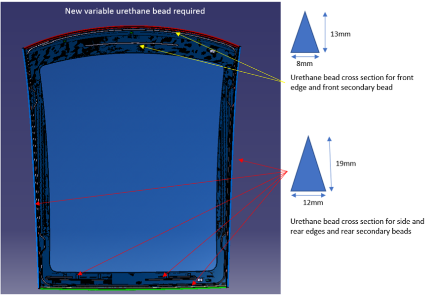 - 较新的车顶玻璃没有厚挤压聚氨酯珠,请继续执行下一步。