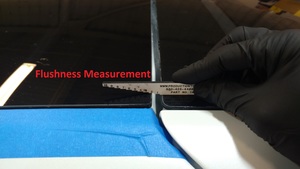 - 检查掀背尾门玻璃、挡风玻璃和车身两侧的间隙和平整度是否符合 CVIS 规范,并根据需要进行调整。