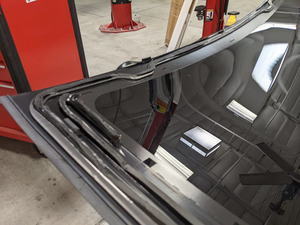 将新密封件放置于挡风玻璃密封件下方的玻璃前部。