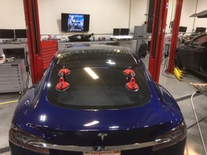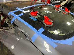 - 在助手的帮助下,将掀背尾门玻璃放置在车辆上,进行快速适配。