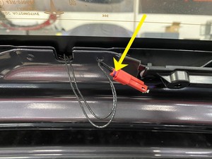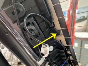 注若方形线缠绕在了中央高位制动灯 (CHMSL) 上,可使用平衡器将中央高位制动灯 (CHMSL) 从掀背尾门玻璃上分离。