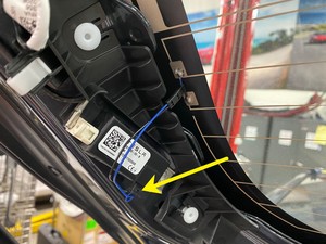 将电线固定在穿线器上,然后将穿线器推进掀背尾门玻璃左侧上部的聚氨酯内。