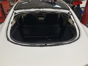 - 在助手的帮助下,将掀背尾门玻璃安装在车辆上。