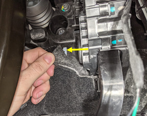- 松开将左侧车身线束固定到踏板总成的卡子。