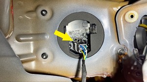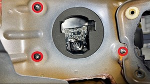 注将车门电机移入车身,并将螺柱(3 个)对齐。