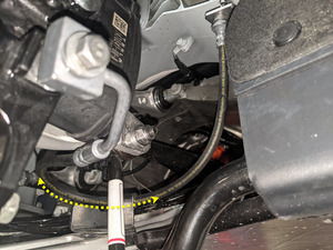 - 松开将空气管路固定到左后制动软管支架的卡子。