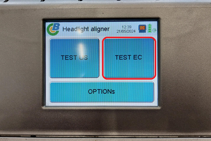 - 适用于所有区域车辆:选择前照灯测试仪工具上的TEST EC。