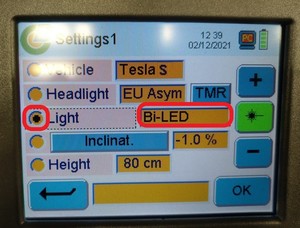 - 选择Light,然后使用+或-按钮将前照灯类型设置为Bi-LED。