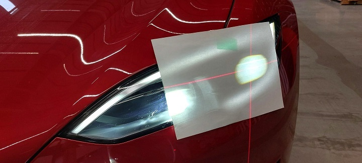 - 点击激光图标,然后将测试仪的水平和垂直位置调整到左侧灯光焦点。