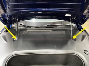 使用遮光板激光器调整测试仪,使其垂直于前备箱盖两侧下部支柱之间的轴线。