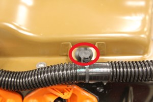 将功率转换系统出口软管连接到高压电池接头,然后紧固将软管固定到高压电池的卡子。