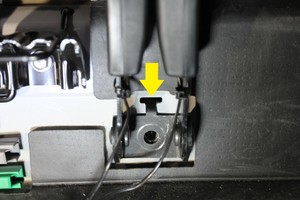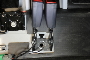 - 松开中间座椅安全带锁扣电气连接器(2 个)。