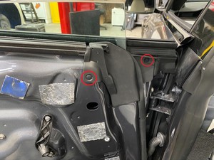 - 将左侧后门二次密封条对准车门总成,然后安装连接密封条与车门的卡子(2 个)。