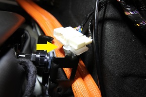 注Fully engage the electrical connector and white locking tab. The connector is intended to lock the safety cap in place.