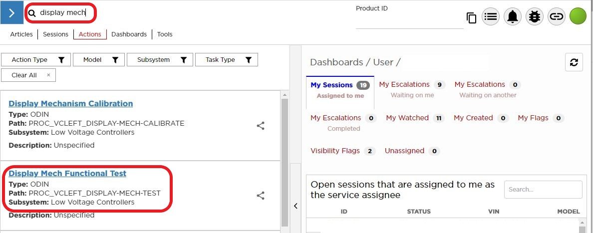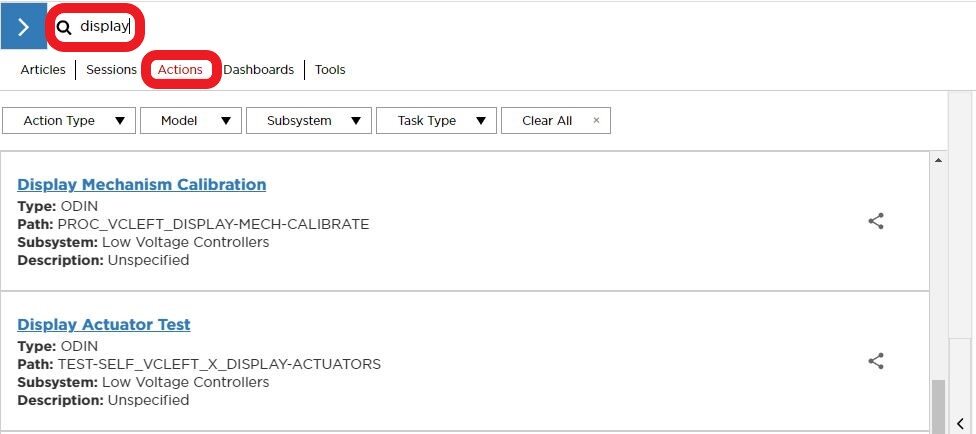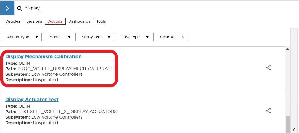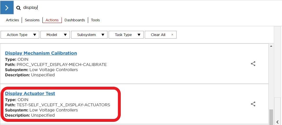 In Toolbox, click the Actions tab, type "display" into the search field, click Display Actuator Test, click Run, and then allow the routine to complete.