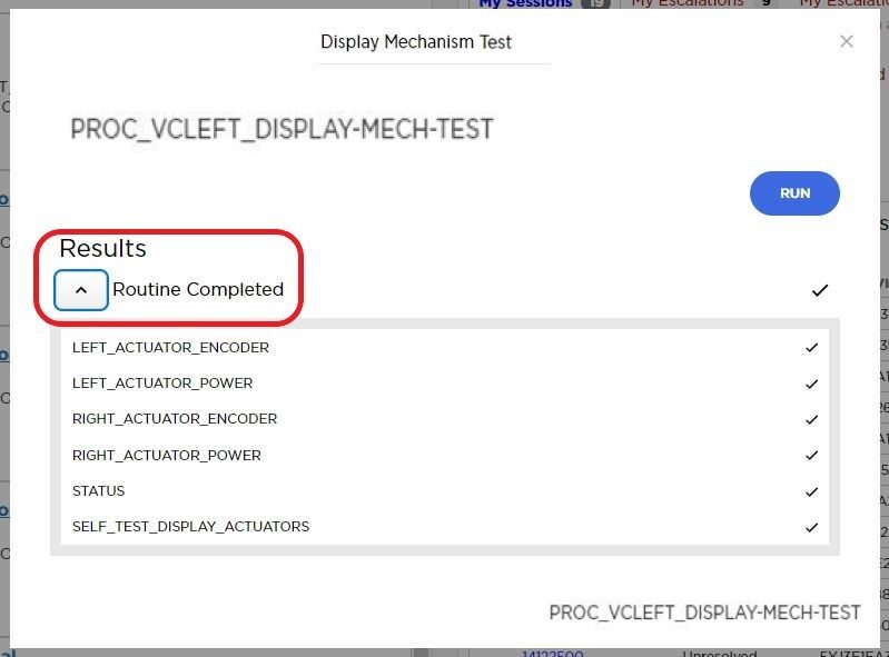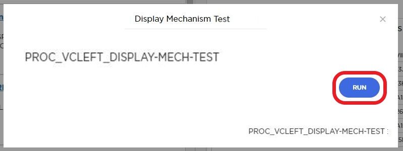 Type "display mech" into the search field, click Display Mech Functional Test, click Run, and then allow the routine to complete.