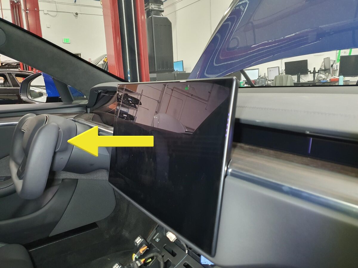 - Position the touchscreen and pivot mechanism on the instrument panel carrier, and then route the display harness behind the LH side of the touchscreen pivot mechanism.