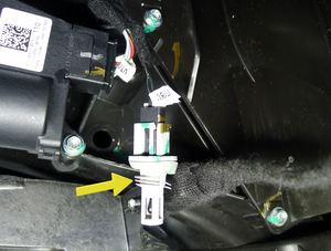 - 将右侧脚部空间风管空气温度传感器放到车辆中,然后连接电气连接器。