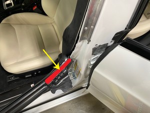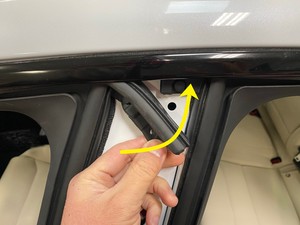 - 拆下将左侧车身前侧主密封条固定到 B 柱的卡子(2 个)。