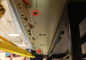 - 首先用棘轮松开,然后用电动工具拆下将高压电池固定到车辆的外部中心螺栓 (x4)。