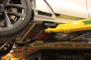 - 将车辆驶离双柱举升机。请参阅举升车辆 - 双柱举升机。